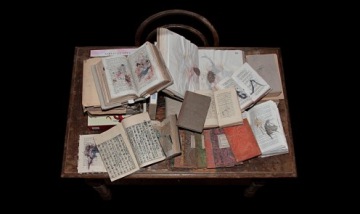 Drawings and writing recording shapes and feelings from the observed natural environment using material available on the spot (plants, soil) is a characteristic of Šejn’s books; he originally used this process during the creation of large individual drawings created in one location, in direct contact with the ground.