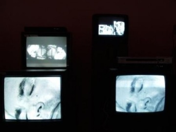 The most extensive installation in the exhibition is Pretty Much Every Film and Video Work From About 1992 Until Now, to Be Seen on Monitors, Some With Headphones, Others Run Silently and All Simultaneously. As the title indicates, the installation presents a concise retrospective of Gordon’s film and video work for the last 17 years, highlighting the artist’s major themes and formal methods.