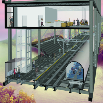 Other locations shown at the exhibition include a future city in the Shackleton crater, which could become the base for humankind’s permanent presence on the Moon; the Guggenheim Museum in Salzburg, Austria – an underground city in a space carved out from solid rock, 150 metres underground; the concept of a linear city, designed as a doctoral research project by architect Nikoleta Slováková; or the Adriaport project – an artificial island near the Adriatic Coast, with a 400-kilometre connecting tunnel to Czechia, designed in 1977 by architect Karel Žlábek for the state company Pragoprojekt, which had never come to fruition due to a Soviet intervention.