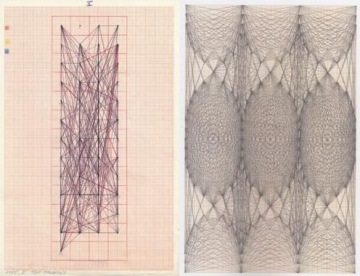 Ladislav Daněk’s Ticketbook, on exhibit this month at Polička/Shelf, is a peculiar, contradictory example of his drawing work, which in its decision-making and circumscription (creation) forms an advanced visual philosophy. Ticket drawings differ from his other work on graph paper in that the points, absolute potentialities, were not chosen by the author, and even his decision on the line’s directions was actually predetermined – he let them enter from outside, literally through a lottery – they map out the order of numbers drawn in the Sportka lottery from 1985 until the change in its drawing system at the beginning of the 1990s.