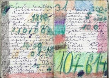 Ladislav Kuk creates monumental in-site works that exist on the border between diary entries and specifically visually arranged “author’s book” spaces. Dozens of his notebooks, which will be presented at the Art Archive in December as part of the Polička/Shelf project, record his movement in the world, one that appears differently to him as a person with Down’s Syndrome, and makes different demands on him than on others. But Ladislav Kuk comes to terms with this world in his own way, with immediacy and joy.