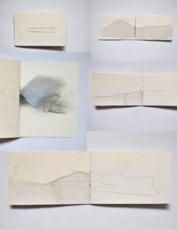 The June edition of Polička/Shelf exhibits small notebooks from her stay in Iceland in 2015. Each is a unique work, similar to the others, but never the same. Though she created several dozen, we are exhibiting only a few. The rest she gave away, or sold them at symbolic prices during concerts and performances.