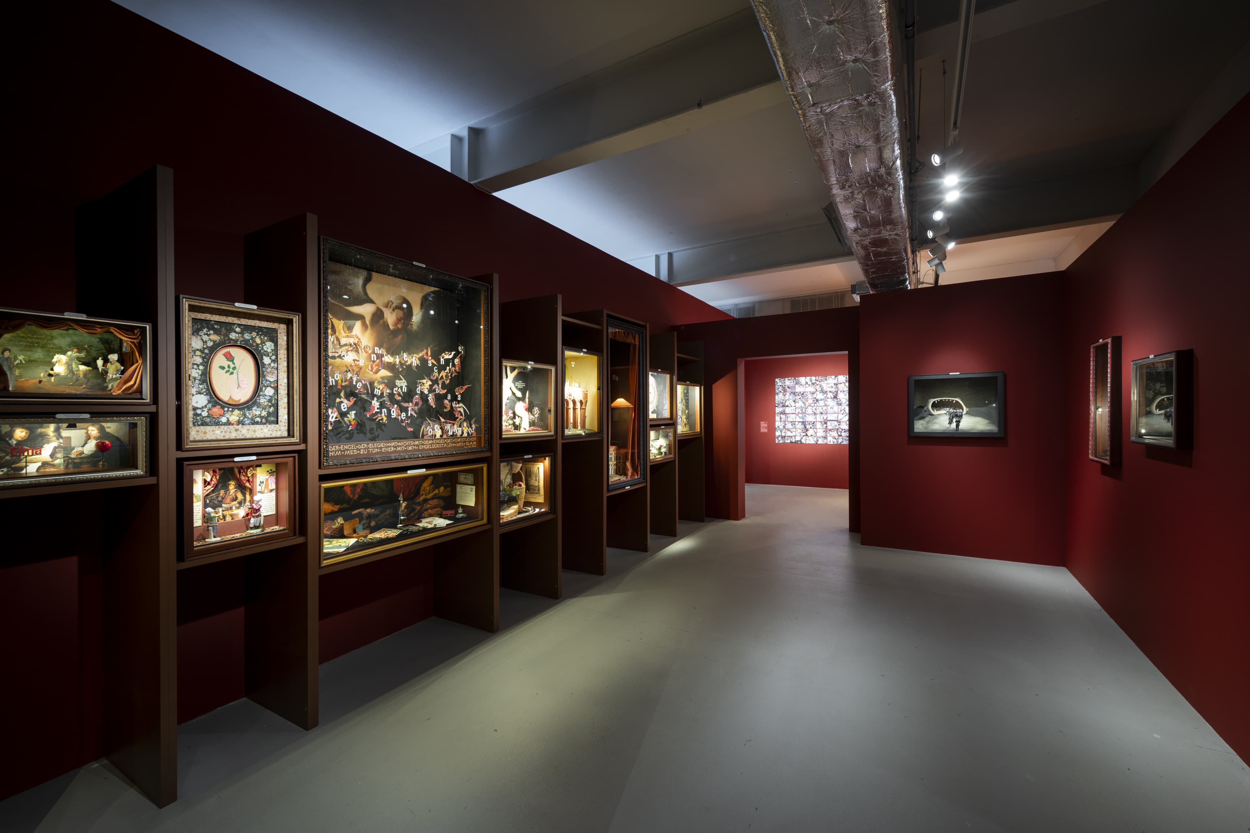 At the heart of the exhibition stands Orhan Pamuk’s The Museum of Innocence. This story of the unfulfilled love of Kemal, a rich son of a factory owner, for his charming but poorer cousin Füsun was conceived by its author from the beginning as both a novel and a museum, which opened in Istanbul in 2012. It unfolds here through quotidian objects carefully arranged into numerous “cabinets of curiosities” that reflect everyday life in Istanbul from the 1950s to the 2000s. In these three-dimensional Dadaist-surrealist still lifes, Pamuk plays with the ambiguity of the relationship between word and image, lending them poetic force.