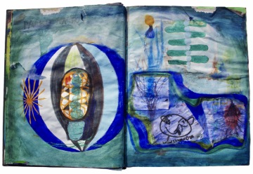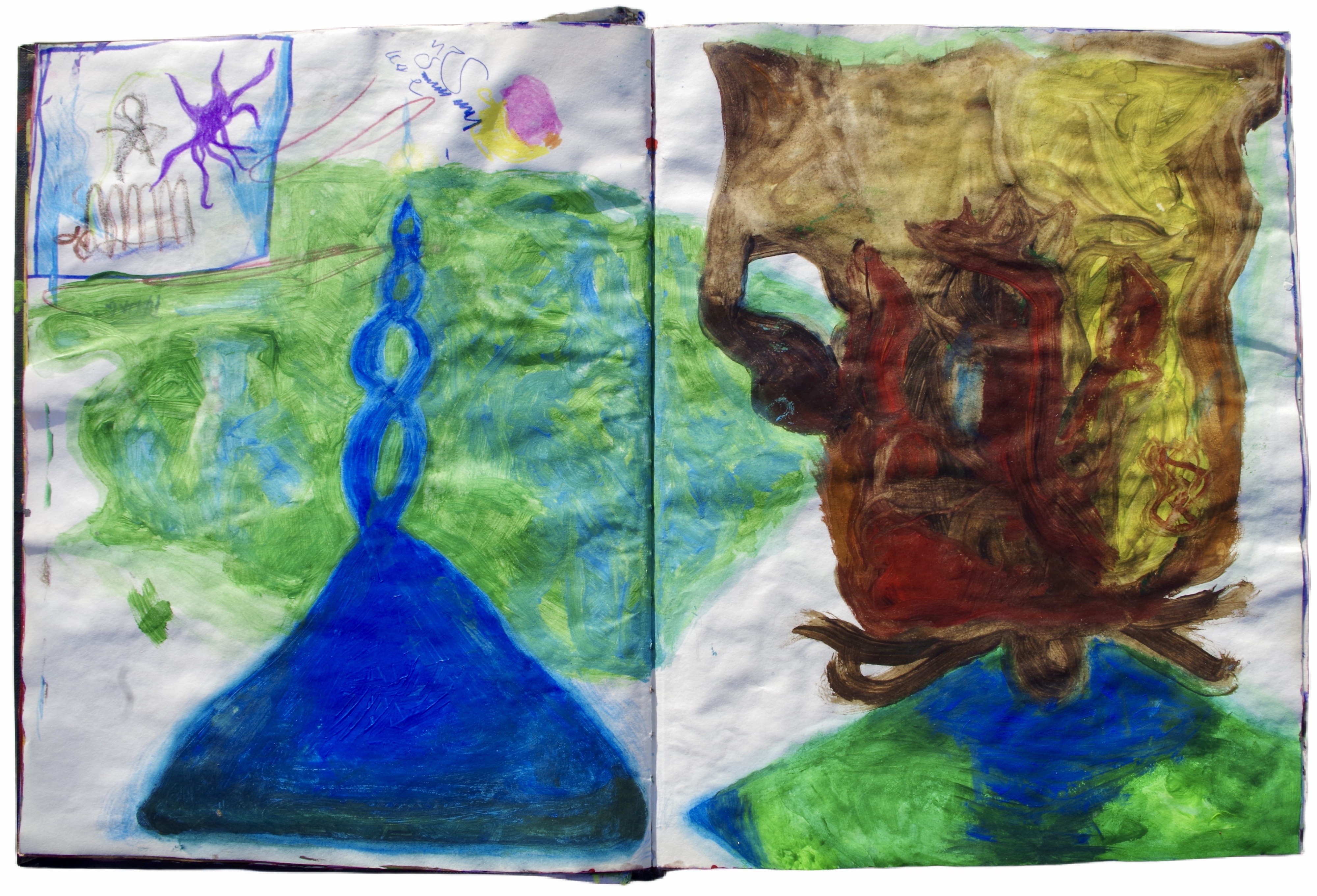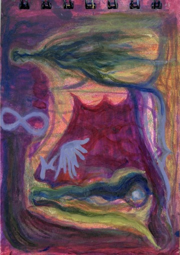 You can clearly see that Viktorie Langer revels in working with color, in observing and sensing how pigments physically flow, soak into materials, and leave their traces. One could almost wish to drown in the layers of paint. Viktorie’s pleasure in creation contradicts the stereotype opinion of poseurs that art must arise from personal suffering that reflects agony of the world although the issues she managed in paintings are often far from rosy. Her work is trained but natural. An intuitive forgetting of herself enable her dissolve into the process and create something genuinely new, unrepeatable, because there is no utilitarian intent behind the creative process, no three-phase task to “create, exhibit, sell.” At the Polička/Shelf, she presents for the very first time an interview with the painteress Jitka Válová, originally created at her artistic beginnings as a high school project. From this initial correspondence and the subsequent personal meeting, Langer not only carried away a spontaneously conducted dialogue but also an experience that encouraged her further artistic course. A large textile fabric covering an entire wall is a conceptual counterpoint, a work by a mature artist, created only a few weeks before this exhibition. The strong inner imagination, which one might intuitively associate with smaller formats, is here developed by on surprisingly large, energy radiating surfaces.