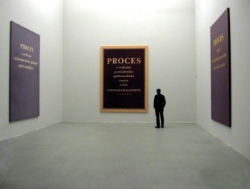 Výstava Proces, která připomíná politické procesy 50. let, je specifickým projektem vytvořeným pro horní galerii věžní budovy centra DOX a patří tudíž k pracím, jež se v angličtině označují termínem „site-specific“. Proces používá metody takzvané apropriace, tj. přivlastnění vybraných, nejčastěji komerčních předmětů nebo obrazů a jejich přenesení do jiného kontextu, jenž má za důsledek změnu jejich významu. Předmětem apropriace však zde není reklama či jiný produkt populární kultury, ale politická propaganda, jmenovitě obálky tří publikací vydaných ku příležitosti největších monstrprocesů, které pod vedením sovětských poradců uskutečnil československý komunistický režim v letech 1950 a 1952.