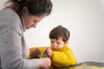 Co na sebe? Ideálně oblečení, u kterého vás nebude bolet, když se v rámci dílny výtvarně opotřebuje. Je-li to ve vašich silách, vemte dětem bačkůrky / capáčky / papučky / protiskluzky.