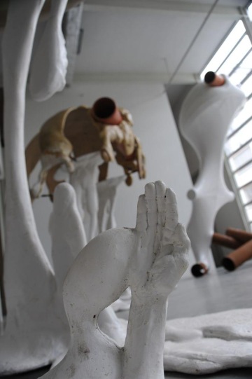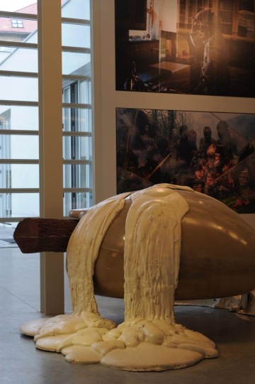 a rozhodli jsme se udělat z jejich těl odlitky. Ty jim pak Lukáš dopravil zpět ve zvláštním objektu, do kterého odlitky vložil pan Havel. Ten tvar pak v Papuy visel na stromě, oni si to sundali a vyřezali si z něj odlitky, je to součást dialogu, kterého se účastníme my, domorodci i pan Václav Havel.