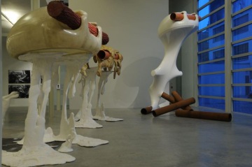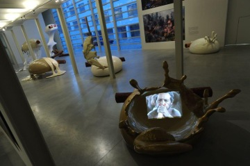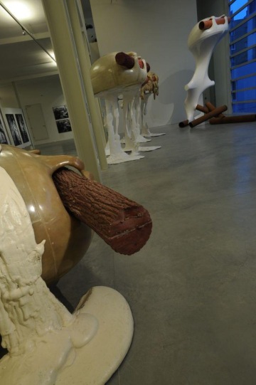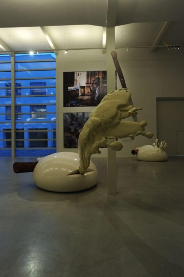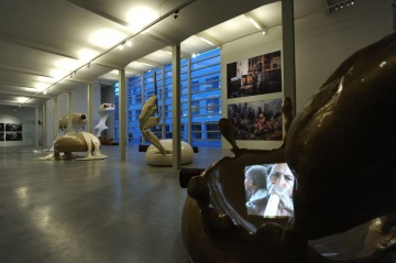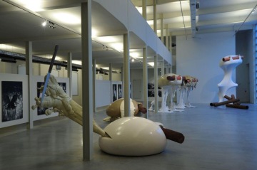 v pralese. Výstava obsahuje velkoformátové fotografie Šlapetové, konfrontované se sérií Rittsteinových soch nazvanou Les.