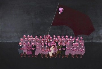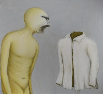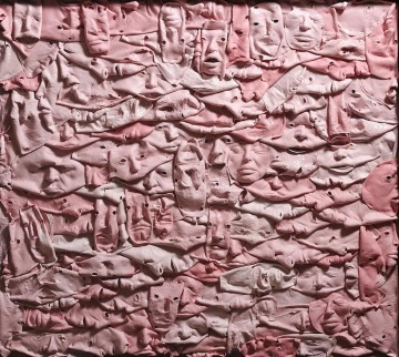 Peštovým klíčovým prvkem je maska - otisk jeho vlastní tváře. Ve druhém plánu ji lze ale vnímat jako symbol přetvářky, který ve svém zmnožení vytváří beztvarou masu pozbývající veškerých charakteristických rysů.