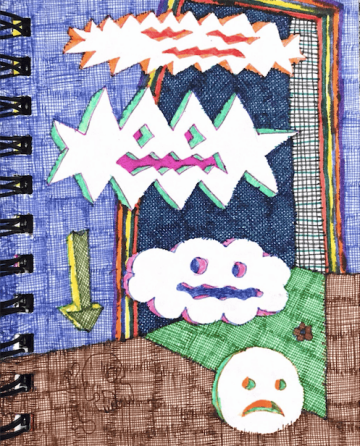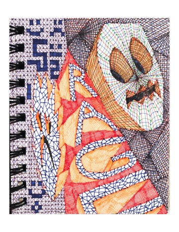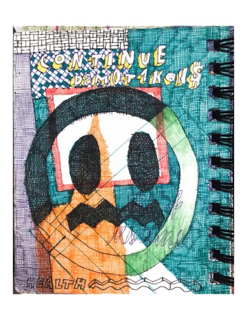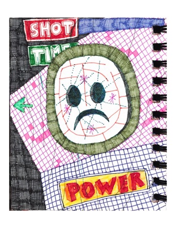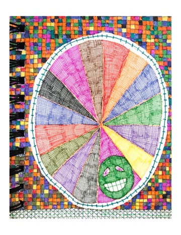 Středoformátové a velkoformátové kresby vytvářené kuličkovým pery a centropeny, typickými školními potřebami mají v sobě něco ze zakázané estetiky psaní na školní lavici (doodle), obsahově zase něco z japonské kultovní hry Pac-Man z roku 1980, kde stále hladovějící žlutý otesánek požírá vše, co mu přijde do cesty, aby zaplnil svou prázdnotu. Kresby pečlivě zahlcené vrstvami a vrstvami barev vytvářených až obsesivně tenkou linkou se na papíře překrývají hned v několika vrstvách a směrech. Kresby jsou součástí velkého celku, který zahrnuje zároveň textilní šité objekty a instalace. Bázi mají v deníku/skicáku, který můžete v Polička / Shelf galerii vidět.