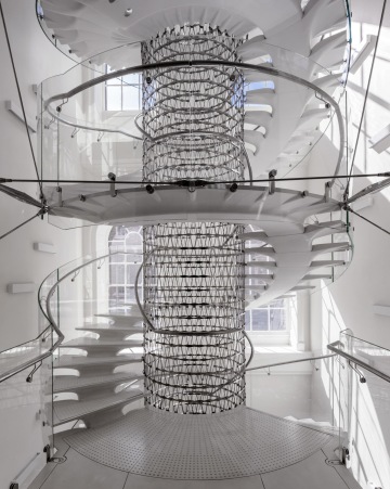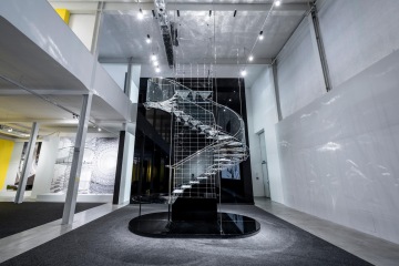 V prostorách výstavy bude rovněž reinstalováno původní monumentální skleněné schodiště vytvořené pro interiér pařížské pobočky sítě obchodů Joan & David v roce 1994. Proslulá přímá i spirálovitá schodiště Evy Jiřičné, v nichž jako první použila sklo jako konstrukční element, jsou v jejím provedení povýšena na sochařská díla.