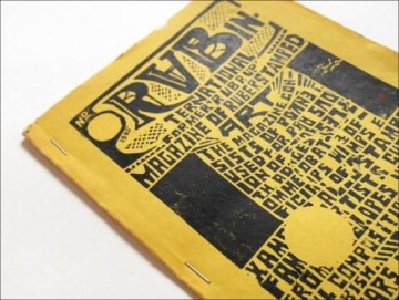 Drobná knížka, kterou představujeme v dubnové Poličce, je jednou z kuriozit Archivu výtvarného umění. RUB International former „Rubrup“ Magazine of Rubberstaped art vyšel v jediném exempláři, je vyrobený ručně a jde v podstatě o fanzin. Tedy o podomácku vyrobené periodikum k oslavě určité subkultury, v tomto případě korespondentů mail artu. (O tom, zda vyšla také další vydání tohoto fanzinu, bohužel nic nevíme). Autor, který si přezdívá Arriere-garde '32nd, v něm shromáždil razítka, která vystřihoval z poštovních balíků a obálek. Ty následně vlepil do sešitu v krásné kompozici (jak ji v podtitulu knihy sám žertem nazývá).