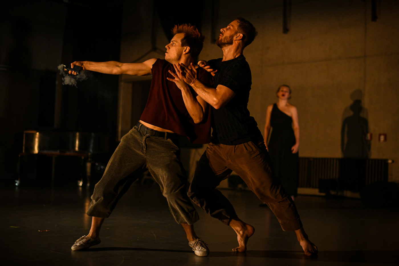 Expresivní a dynamické pohyby performerů vyvolávají atmosféru nepřetržitého napětí a nutí diváky být neustále ve střehu. Po boku peformerky a zpěvačky Hany Varadzinové tentokrát vystoupí nová generace tanečních osobností souboru – Michaela Králiková, Andrej Štepita a David Králík.