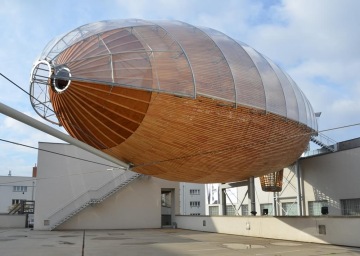 Rozlehlá terasa přímo pod majestátní Vzducholodí nabízí jedinečnou možnost uspořádání společenských setkání, letních rautů, inspirativních workshopů či teambuildingů. Ojedinělý výhled na celé Centrum DOX i čtvrť Holešovice.